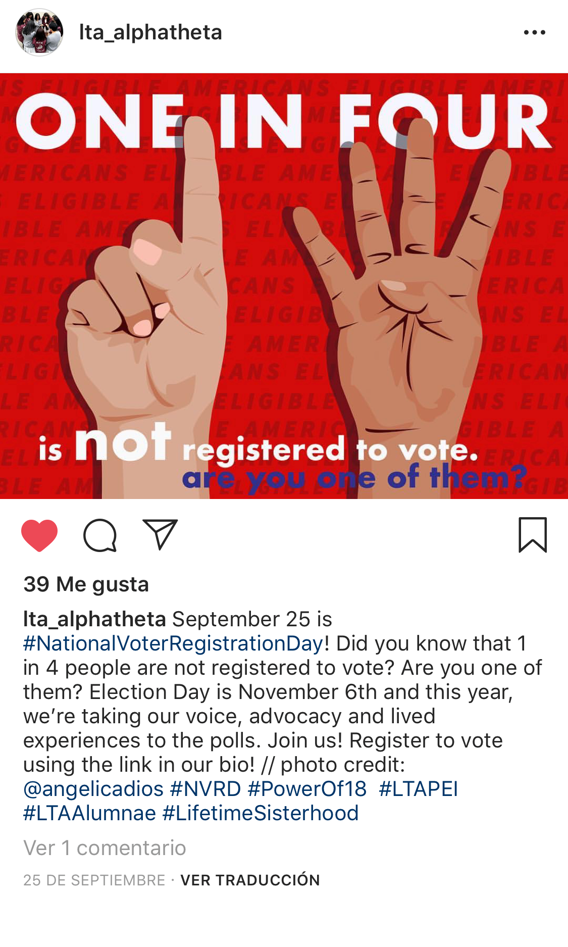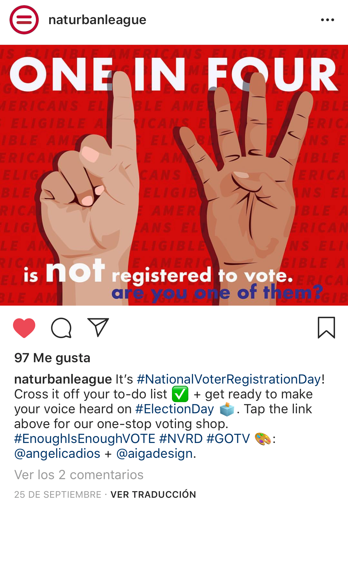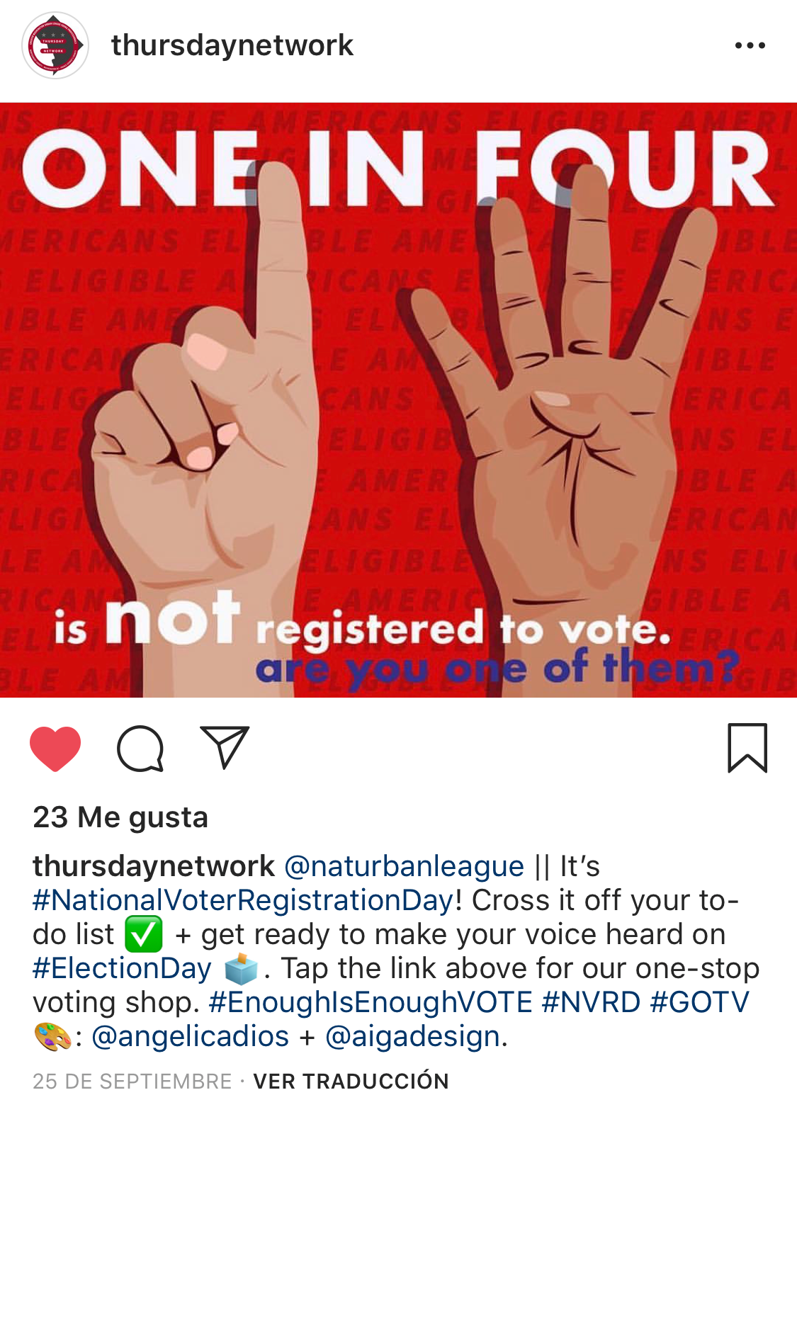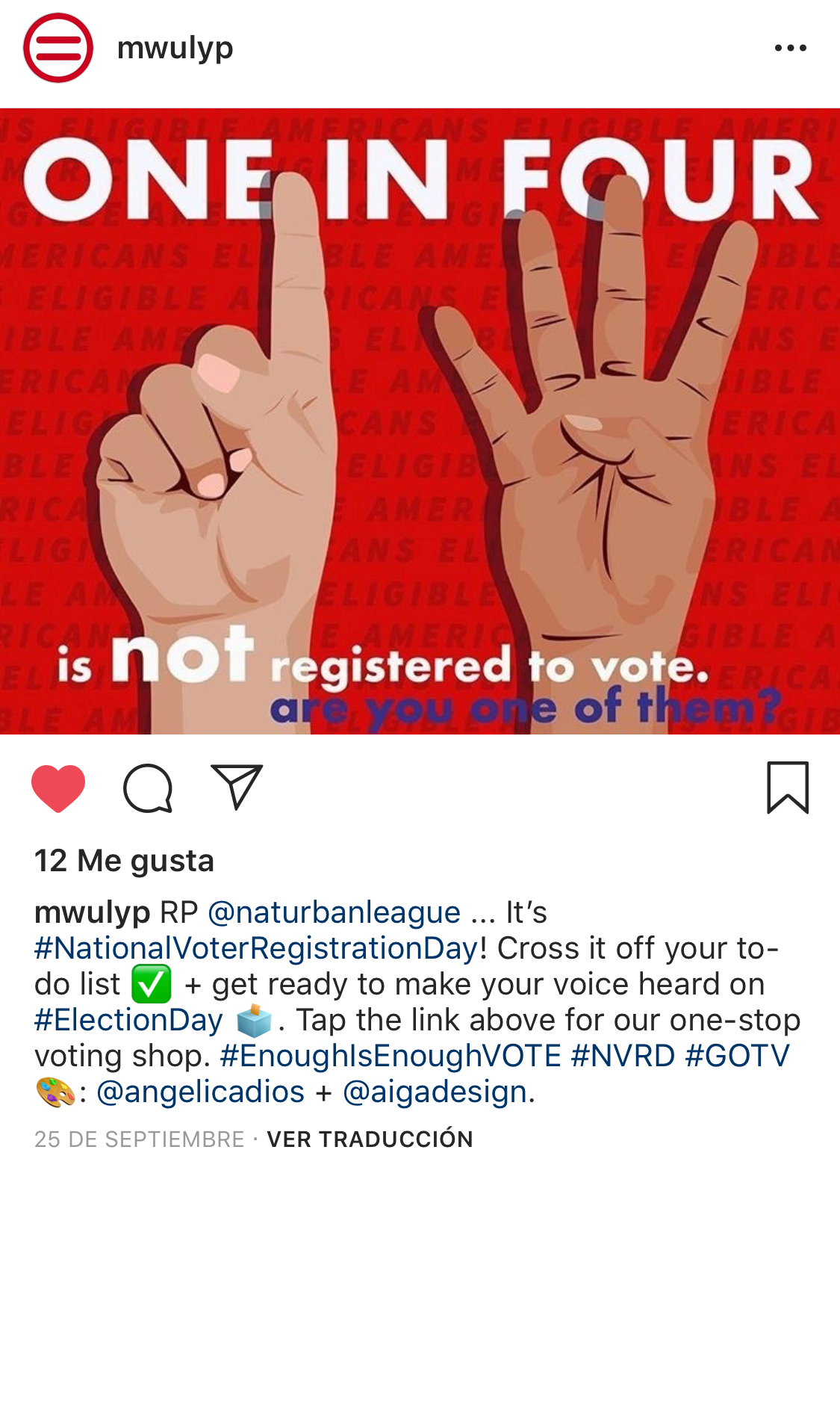 On National Voters Registration Day, my submission was shared as a status on twitter by National Voter Registration Day’s official twitter account as a call to action asking followers to register. As a result my graphic was also shared on social media by NonprofitVOTE’s nonprofit partners.
